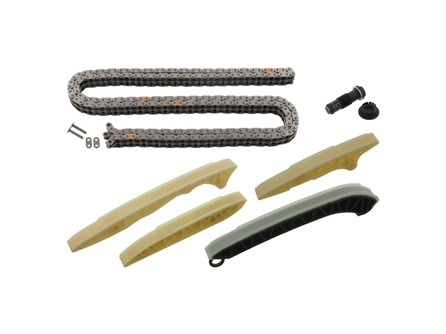 Notes: Contains: (1) Timing Chain - with Master Link, (1) Timing Chain Tensioner, (1) Left Lower Guide Rail, (1) Right Lower Guide Rail, (1) Left Upper Guide Rail, (1) Right Upper Guide Rail, & (1) Timing Cover Plug.