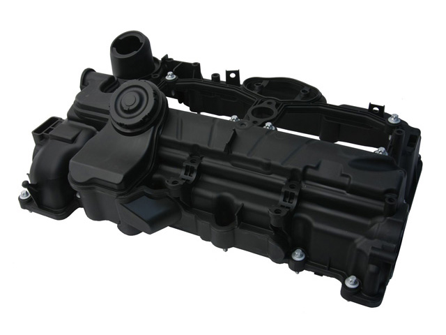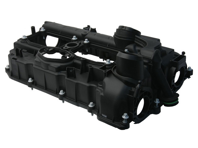 Notes: PCV Valve is part of this valve cover. Includes: (Qty.) (1) Valve Cover Gasket Set, (20) Valve Cover Bolts, (1) Ball Pin, (4) Damping Elements, (1) Shaft Seal. Also use - (Qty.) (1) 11 37 7 502 022 Actuator Gasket, (Qty.) (1) 11 12 7 507 217 Brake Booster Vacuum Pump Seal, (Qty) (2) Variable Timing Solenoid Seal. For PCV Valve, see part# 09 1788 100. Also use- (Qty.) (1) 13 53 7 585 426 Fuel Feed Pipe.